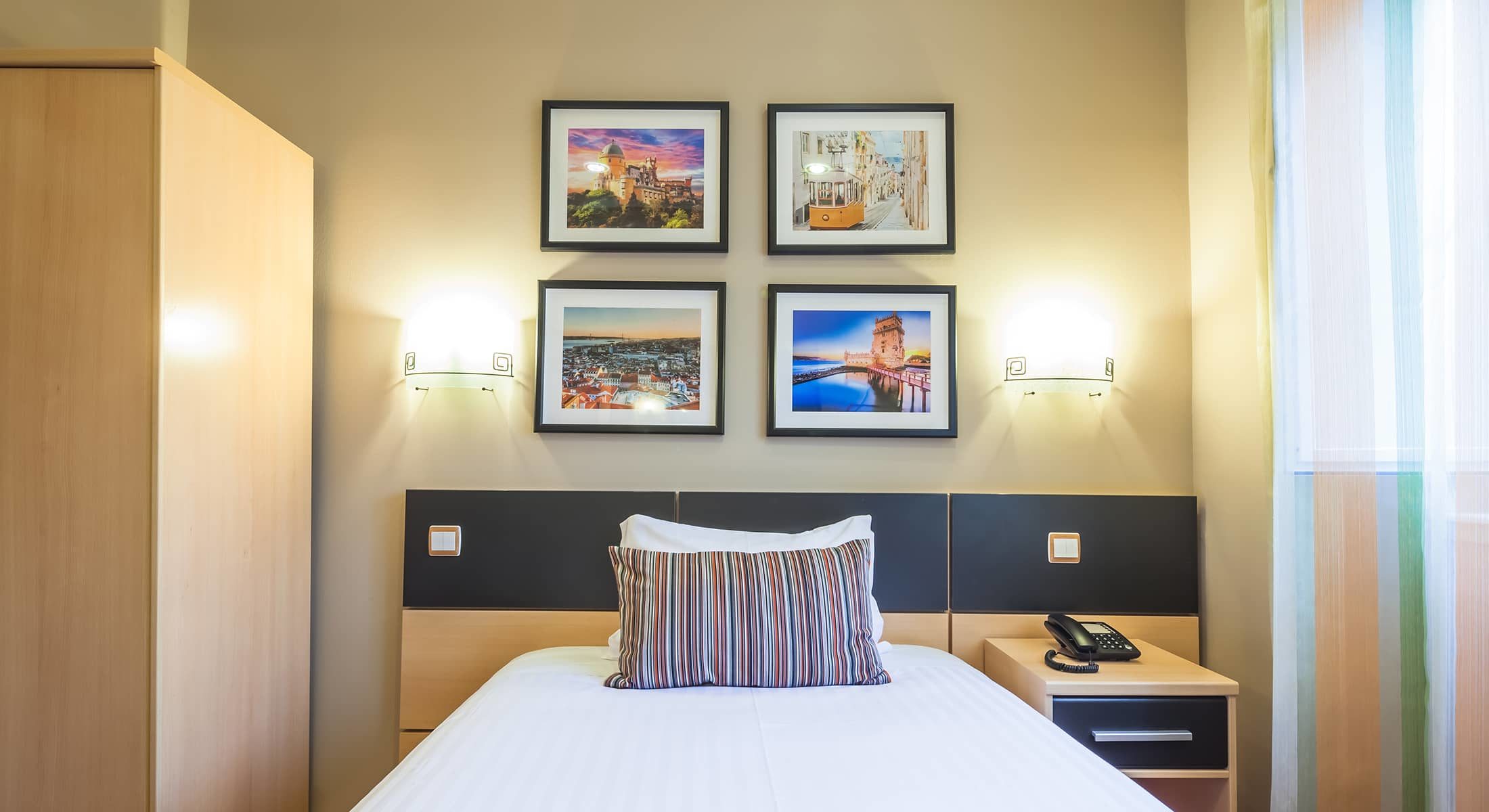 Nos chambres simples sont idéales pour les voyageurs fréquents. Elles sont équipées de l’essentiel pour votre séjour à Lisbonne. Ce sera votre refuge naturel à la fin d’une journée de travail ou de visites.