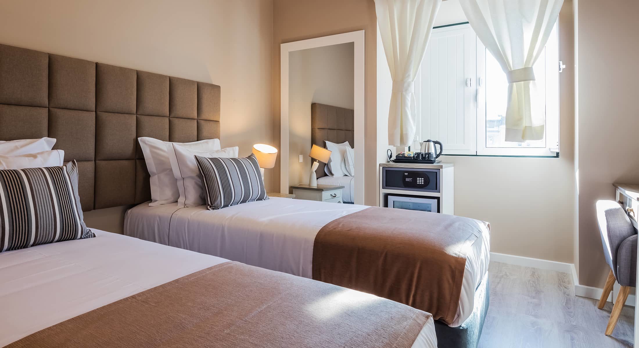 With two single beds, our twin rooms are ideal to share with a friend, colleague or relative. These rooms also have a nice extra-bed that can be used as a sofa for relaxing or reading at the end of the day or even for use of a third person, which makes them perfect for a group of friends.