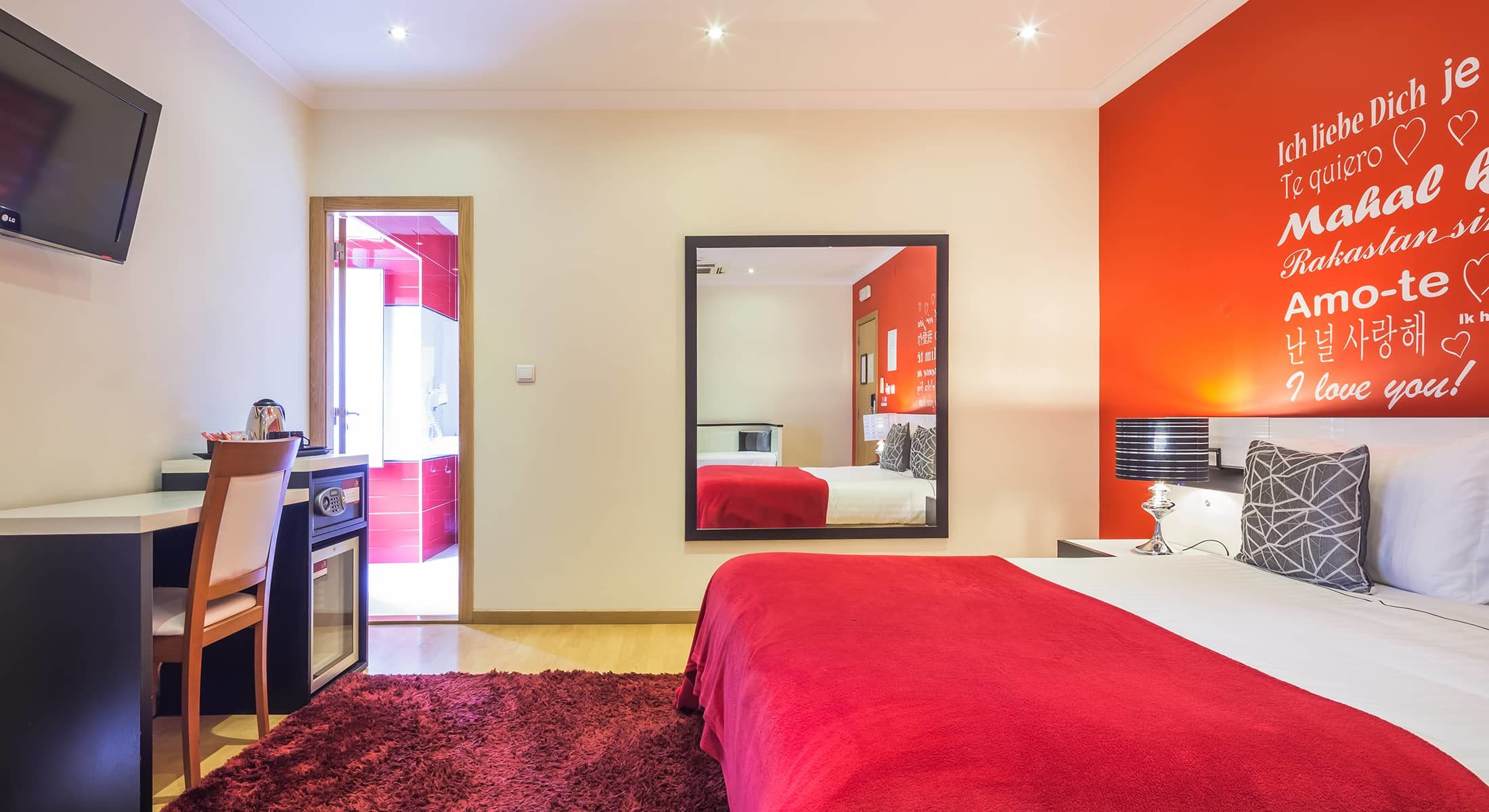 Há viagens especiais. Ao ficar alojado na nossa Suite Deluxe, esta será, com certeza, uma dessas viagens. Ideal para a sua lua-de-mel, comemoração de aniversário ou simplesmente como um luxo acessível, a nossa suite oferece jacuzzi e decoração romântica, proporcionando-lhe a melhor estadia que poderá ter.